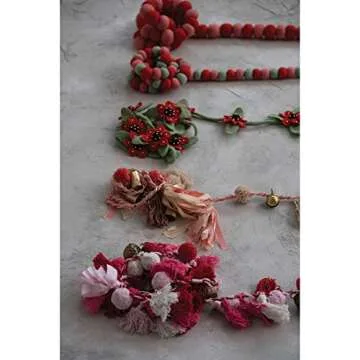 Show moreTransform your home into a vibrant oasis with the Creative Co-Op 72' L Handmade Recycled Cotton Tassel & Bell Garland. This stunning garland, featuring an exquisite blend of pink, red, and cream colors, creates an inviting atmosphere that brightens any room. Each tassel is handcrafted from sustainable recycled cotton, reflecting a commitment to environmentally friendly practices while adding a unique touch to your decor. The charming bells ring gently with the slightest breeze, introducing a delightful auditory dimension to your space.
