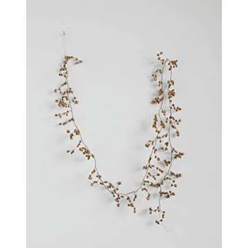 Show moreEnhance your home decor with the stunning **Creative Co-Op Beaded Leaf Misc Garlands in Gold**! Crafted from premium quality wire, this exquisite garland features delicately designed beaded leaves that shimmer and shine, adding a touch of elegance to any space. Measuring **72 inches in length**, with a slim **0.5 inch width** and height, this versatile garland can be effortlessly draped over furniture, adorned on walls, or intertwined in centerpieces to create eye-catching displays. Its **compact packaging length of 13.9 inches** makes it easy to store or gift, bringing convenience to your creative endeavors. This garland not only serves as a stunning decoration but also reflects your unique style and sophistication.