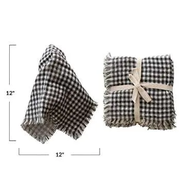 Creative Co-Op Black and White Square Cotton Fringe Trim Napkin, Black & White Gingham