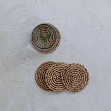 Creative Co-Op Boho Woven Palm Jute Tie Coaster Set - Natural Elegance for Your Home