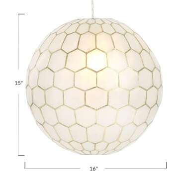 Creative Co-Op Capiz Honeycomb Globe Pendant Light, Capiz White Seashells with Antique Gold