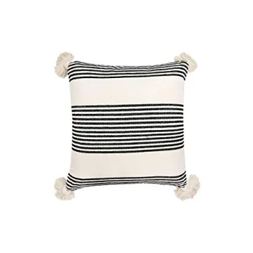 Show moreIntroducing the Creative Co-Op Cream Cotton & Chenille Black Stripes & Tassels Pillow, a stunning addition to your living space that marries style and comfort. Crafted from high-quality cream cotton and soft chenille, this pillow boasts a unique and eye-catching design featuring bold black stripes complemented by playful tassels. Measuring 20 inches on each side with a depth of 4 inches, it provides the perfect plushness and support, making it not only a decorative accent but also a cozy companion for lounging or napping. Its versatile design makes it easy to integrate into any décor theme, whether you are looking to enhance a minimalist space or add a pop of interest in an eclectic setting.