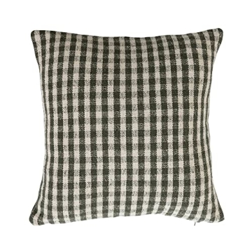 Creative Co-Op Woven Recycled Cotton Blend Pillow Gingham in Green and White