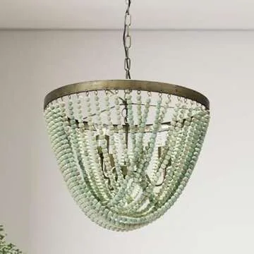 Creative Co-Op DA8264 Metal Chandelier Wood Beads, Aqua Blue