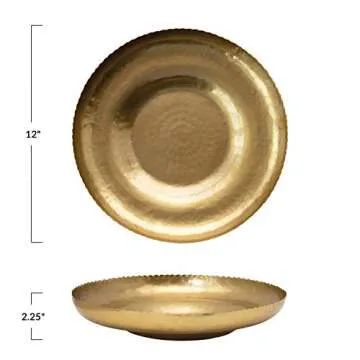 Show moreIntroducing the Creative Co-Op Decorative Hammered Metal Tray, a stunning piece that combines functionality with artistry. This exquisite tray features a beautiful antique brass finish, perfectly complemented by its elegant scalloped edge. Measuring a generous 12 inches in diameter and standing 2-1/4 inches tall, it's perfect for displaying a variety of small items, from candles to decorative accents. Whether you’re looking to elevate your home décor or just want a stylish way to organize your belongings, this tray is an excellent choice.