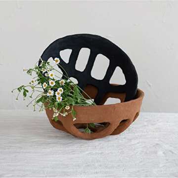 Show moreIntroducing the Creative Co-Op Decorative Handmade Paper Mache Basket in a stunning black finish – an artisanal masterpiece designed to elevate your home décor. Expertly crafted from eco-friendly paper mache, this statement piece combines rustic charm with modern aesthetics, making it the perfect addition to any interior setting. Its unique, irregular shape adds a bold touch that stands out, turning a simple storage solution into an eye-catching art piece. Measuring 13 inches in length, 13 inches in width, and 5 inches in height, it’s perfectly sized to hold everything from books and magazines to cozy throw blankets, while artistically showcasing your personal items.