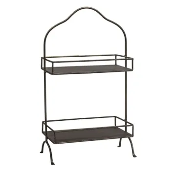 Show moreIntroducing the Creative Co-Op Decorative Metal 2 Tier Tray with Handle, your new go-to solution for organization and elegant decoration! This expertly crafted tray combines functionality with style, making it a quintessential addition to any home. Made from durable metal, it promises to withstand daily use while adding a touch of sophistication to your space. With dimensions of 10.5 inches long, 6 inches wide, and 18 inches high, it occupies just the right amount of space while providing you with ample room on its two solid shelves, measuring 10 inches long by 5.75 inches wide, to artfully display a variety of items, from vitamins to décor pieces.