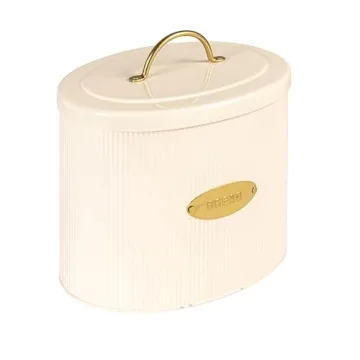 Show moreElevate your kitchen organization with the Creative Co-Op DF2516 Oval Metal Lid Bread Box in Off-White. This exquisite piece combines functionality with a touch of elegance, featuring a beautifully embossed "Bread" label in gold that enhances its stylish appeal. Measuring 11.25 inches in length, 8 inches in width, and 10.75 inches in height, this bread box offers ample space to keep your breads, bagels, and pastries fresh while significantly contributing to your luxurious kitchen décor. Crafted with care, this handmade item specifies quality in both appearance and performance, a must-have addition for any culinary enthusiast.
