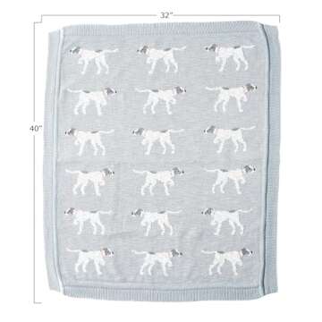 Creative Co-Op DF2527 40" L x 32" W Cotton Knit Baby Dog Blanket, Blue, Small