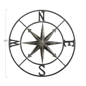 Show moreTransform your living space with the Creative Co-Op Distressed Decorative Metal Compass Wall Décor, a beautifully crafted piece that combines nautical charm with a vintage appeal. Measuring an impressive 30 inches in diameter, this stunning metal compass is designed to be more than just decoration; it is a statement piece that can elevate the atmosphere of any room or outdoor area. Perfect for those who appreciate style and substance, the compass wall decor is crafted from durable materials, ensuring it withstands the test of time while maintaining its aesthetic integrity.