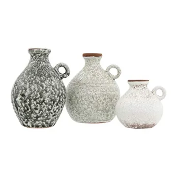 Show moreTransform your living space with the Creative Co-Op Distressed Grey Terracotta Reactive Glaze Finish (Set of 3 Sizes) Vases. These stunning vases, crafted from high-quality terracotta, exude a rustic charm that perfectly complements both modern and traditional decor. With their unique reactive glaze finish, the grey and white tones create a beautiful interplay of color and texture, enhancing the visual appeal of any setting. Each vase measures 3.5 inches, 5.5 inches, and 6.25 inches in height, offering versatile options for displaying fresh flowers, dried arrangements, or simply as eye-catching decorative pieces. Easy to maintain, these vases can be effortlessly wiped clean with a dry cloth, making them a practical choice for busy households. Upgrade your decor with these stylish and functional vases that are sure to become a focal point in your home.