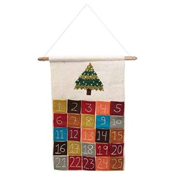 Creative Co-Op Embroidered & Appliqued Hanging Felt Advent Calendar with 25 Pockets
