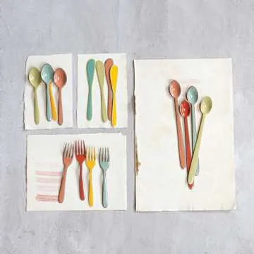 Creative Co-Op Enameled Stainless Steel Canape Knives with Colored Edge, Multicolor, Set of 4, Small, Multi