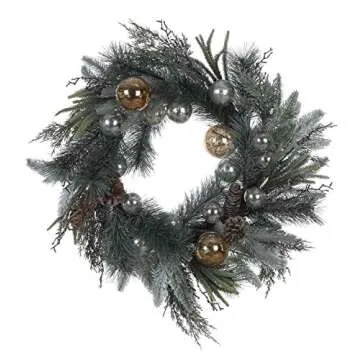 Creative Co-Op Faux Green Pine Pinecones and Silver & Gold Ornaments Wreath