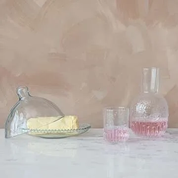 Creative Co-Op Glass Cloche and Hobnail Edge Tray, Clear