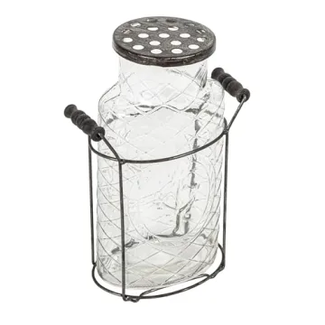 Introducing the Creative Co-Op Glass Vase in Metal Stand with Metal Frog Lid—a stunning fusion of style and functionality that enhances any floral arrangement or home decor setting. Crafted with a robust metal and glass construction, this exquisite vase is not just a vessel for your flowers; it is a centerpiece that captures attention and complements your interior. The delicate yet sturdy jar measures 5 inches in length and 3 inches in width, standing tall at 10 inches, while the metal...