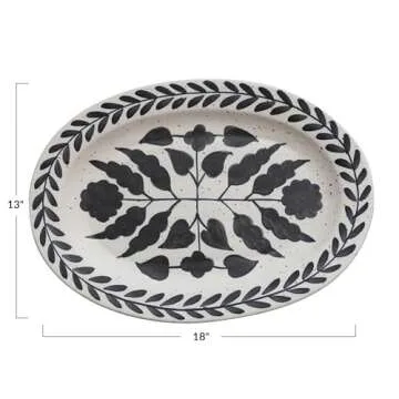 Creative Co-Op Hand Painted Stoneware Platter with Floral Design, Black and White