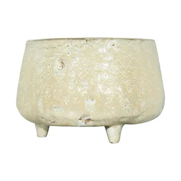 Creative Co-Op Large Stoneware Footed Cream Reactive Glaze Finish (Each one Will Vary) Pots and Planters, Tan