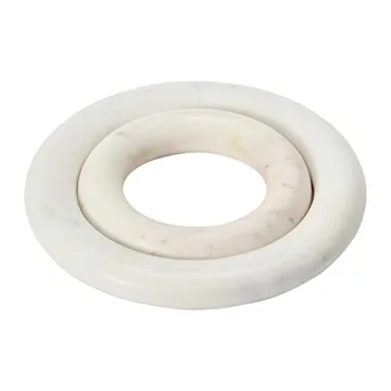 Show moreElevate your kitchen and dining experience with the Creative Co-Op Marble Trivets Set. This elegant set of two features beautifully crafted marble pieces in a classic ring design, making them not only functional but also a significant addition to your home decor. The unique vanilla shade, complemented by darker spots, gives these trivets a touch of sophistication, ensuring they blend seamlessly into both contemporary and traditional kitchen settings.