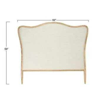 Creative Co-Op, Natural, Queen Modern Farmhouse Solid Oak Wood Headboard with Linen Upholstery, Beige