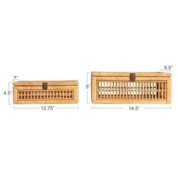 Creative Co-Op Rattan and Bamboo Nestable Storage Boxes with Glass Lids, Natural, Set of 2