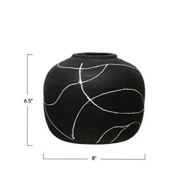 Show moreIntroducing the Creative Co-Op Round Decorative Terra-Cotta Vase, a captivating piece that effortlessly enhances your living space with its unique, hand-painted black and white intersecting line pattern. This stunning vase stands at 6.5 inches tall and boasts a diameter of 8 inches, making it the perfect centerpiece or accent piece for any room. Crafted from high-quality terra-cotta, this vase not only exudes durability but also adds a touch of organic elegance to your modern, minimalist, or Scandinavian style home. Its versatile design provides endless possibilities for showcasing your favorite flowers or simply standing alone as a work of art.