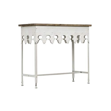 Creative Co-Op Rustic Farmhouse Metal Console Table with Solid Wood Top, Distressed White