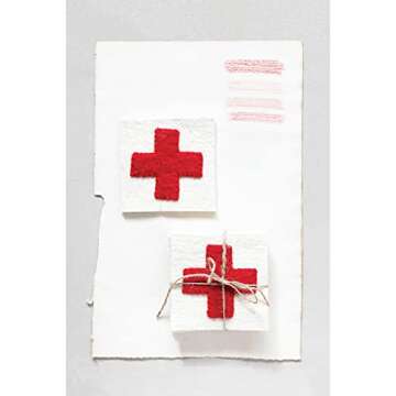 Creative Co-Op Square Wool Felt Coaster with Appliqued Swiss Cross, Cream Color and Red, Set of 4