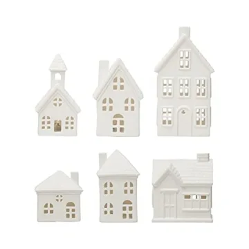 Show moreLight up your holiday season with these enchanting ceramic white stoneware bisque houses. This delightful set of 6 houses is designed to add a whimsical charm to your seasonal displays, making them an ideal choice for creating a cozy, festive atmosphere. Each house varies slightly in design and size, with measurements of 5 inches long, 4 inches wide, and 7 inches high, allowing for a unique arrangement that showcases your personal style.