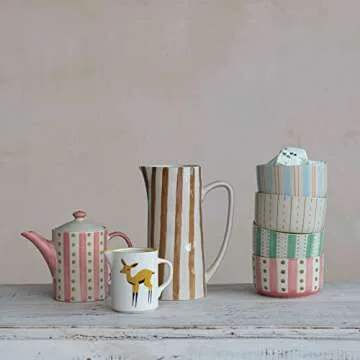 Show moreIf you are looking for a blend of creativity and functionality in your teapot, look no further than the Creative Co-Op Stoneware Painted Design and Strainer. This exquisite piece stands out due to its eclectic, hand-painted patterns, each one carefully crafted to give you a unique experience every time you brew a pot of tea. Measuring 8 inches L x 4 inches W x 6.25 inches H, it is just the right size to serve your favorite teas while elevating your kitchen or dining decor.
