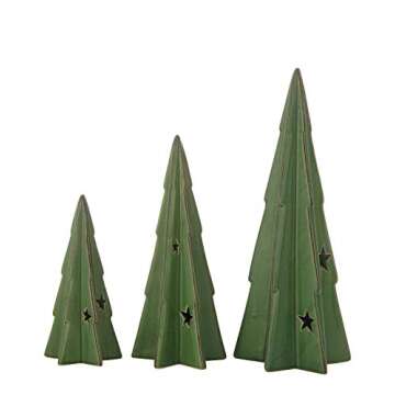 Creative Co-Op Stoneware Tree with Star Cutouts & LED Light, Green
