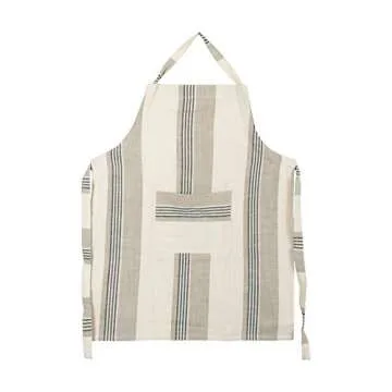 Show moreIntroducing the Creative Co-Op Taupe, Black & Cream Striped Cotton Woven Apron—the perfect blend of style and functionality for your kitchen endeavors. This apron is not just about looking good; it's designed to protect you from spills and splatters while you cook or entertain. Measuring a generous 32 inches in length and 28 inches in width, it provides ample coverage to keep your clothing pristine. The exquisite cream, taupe, and black striped design adds a sophisticated flair to any kitchen or dining setup, making you look effortlessly chic, whether you're whipping up a gourmet meal or hosting a friendly gathering.