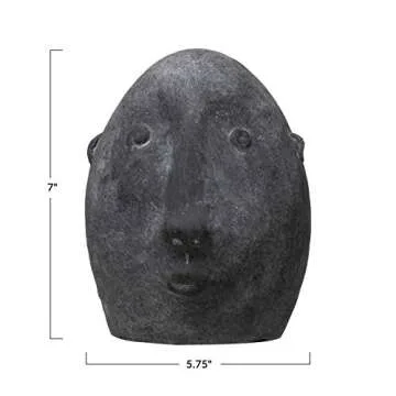 Show moreExplore Your Inner Artist with the Creative Co-Op Terra-Cotta Face in a stunningly distressed matte black finish. This eye-catching sculpture effortlessly infuses a touch of sophistication and creativity into your home décor. Crafted from high-quality terra cotta, its unique face shape invites onlookers to explore both the minimalist and artistic sides of contemporary design. Perfectly sized at 5-3/4 inches round and 7 inches high, it is versatile enough to fit beautifully on nightstands, dressers, or coffee tables, making it an ideal addition to any room.