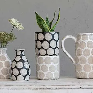 When compared to other planters on the market, the **Creative Co-Op Terracotta Wax Relief Dots Planter** stands out due to its unique design and quality craftsmanship. While many planters may offer simple designs, this planter elevates your decor with its tactile polka dot treatment and appealing color contrast. Its sturdiness and aesthetic appeal provide greater value than many flimsy, plastic alternatives, ensuring it can be a centerpiece in your home for years to come.
