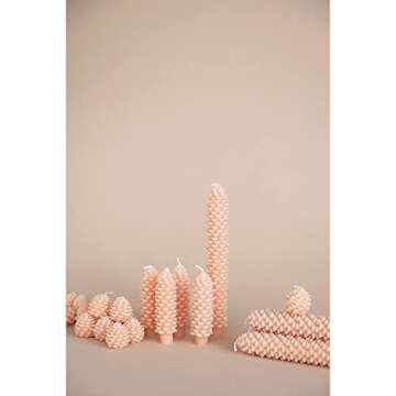 Show moreIntroducing the Creative Co-Op Unscented Pinecone Shaped Taper Candles in a delightful blush pink, perfect for elevating your home decor during the fall season and festive holidays. These charming taper candles not only pay homage to the beauty of nature with their unique pinecone shape but also bring a warm ambiance to any setting. Each candle is crafted from 100% paraffin wax, promising a high-quality burn that lasts approximately 5 hours. Each piece measures 2 inches wide by 2 inches long and stands 5 inches high, making them the perfect size for various candle holders or as standalone centerpiece pieces. Elegantly packaged in a coordinated box, these taper candles are a stunning addition to your seasonal decor or make a thoughtful gift for loved ones.