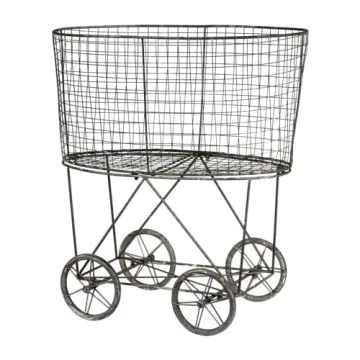 Show moreWelcome to functional elegance with the Creative Co-op Vintage Metal Laundry Basket with Wheels, an exquisite piece that seamlessly merges utility with style. Crafted with meticulous attention to detail, this wire basket cart is finished in a charming gray that evokes a delightful vintage aesthetic. Measuring 25" x 15" x 26 3/4" (W x D x H), it is perfectly sized to serve a multitude of purposes, from a stylish laundry hamper to a chic blanket holder, or even an eye-catching statement piece in your living room. Made of durable metal construction, this cart is not just visually appealing but also designed for longevity, promising a delightful addition to your home for years to come.