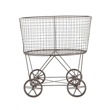 Show moreElevate your home decor game with the Creative Co-Op Vintage Reproduction Metal Laundry Basket on Wheels, a charming and practical addition to any room! Crafted with a keen eye for design, this stunning laundry basket is constructed from 100% iron, ensuring durability while adding a touch of vintage charm to your space. Measuring a generous 25 inches long, 15.75 inches wide, and 27 inches high, its small-scale frame allows for versatile placement whether in your bathroom, living room, or laundry area. With antique-style oversized wheels, mobility is effortless, making it easy to transport your items wherever they are needed.