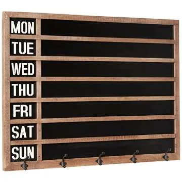 Creative Co-Op Weekday Wall Chalkboard with 5 Metal Hooks