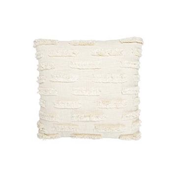 Creative Co-Op White Cotton Embroidered Lines of Decorative Fringe Pillows, 1 Count (Pack of 1)