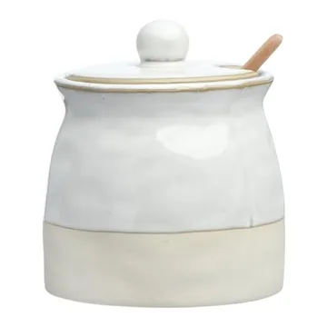 Show moreIntroducing a delightful addition to your kitchen décor, this beautifully crafted sugar bowl features a stunning reactive glaze finish that not only enhances its allure but also ensures each piece is unique, adding an artistic touch to any space. Designed with a practical size of 3-1/2 inches round x 4-1/4 inches high, it is perfect for daily use while still making a statement on your countertop. The neutral colors — a harmonious mix of whites and beiges — effortlessly match with any kitchen accessories, making this item a versatile choice for your home.