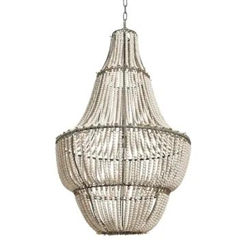 Show moreIlluminate your living space with the stunning Creative Co-Op White Washed Metal Chandelier with Wood Beads. This exquisite chandelier is not just a lighting fixture; it's a beautiful statement piece designed to enhance the charm of your home. Complete with hand-picked, whitewashed wooden beads that lend a rustic appeal, this chandelier offers a unique blend of elegance and warmth. Measuring 25.5 inches in both length and width, and standing at an impressive height of 41.25 inches, it is ideal for spaces that boast generous ceiling heights, creating an eye-catching focal point in any room.