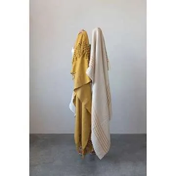 Creative Co-Op Woven Cotton Crochet and Fringe Blanket Throw, Single, Yellow