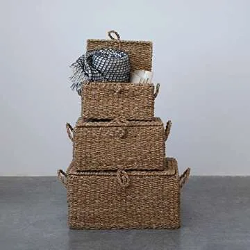 Creative Co-Op Woven Seagrass Storage Trunks, Set of 3 Sizes, Natural