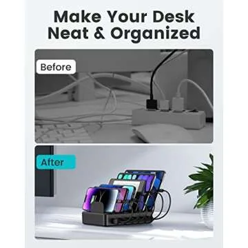 Built for versatility, this charging station features six smart USB ports that can simultaneously power your smartphone, power bank, tablet, and more, all while keeping them neatly organized. Measuring just 7.08 x 4.33 x 1.37 inches, it fits seamlessly into any environment, whether at home, in the office, or even while traveling. Switch your cluttered charging setup for a more efficient, tidy solution.