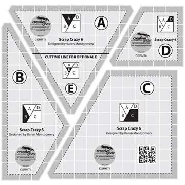 Show moreUnleash your creativity with the Creative Grids Scrap Crazy 6 Templates Quilt Ruler 4pc Set! Designed for quilting enthusiasts, this innovative template set allows you to craft stunning 6-inch finished Scrap Crazy blocks. Made to accommodate your fabric stash, these templates are perfect for cutting from those odd-sized scraps or stacking fabrics to create multiple pieces swiftly. With a total size of 6in x 9in, these templates help you maximize your sewing experience.