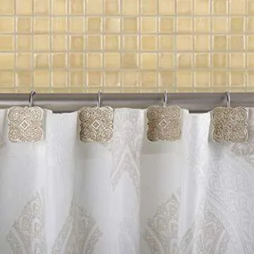 Creative Scents Victoria Beige Shower Curtain Hooks - Set of 12 Shower Curtain Rings for Bathroom Shower Rod - Decorative Shower Hooks for Shower Curtain, Sturdy Shower Rings for Curtain