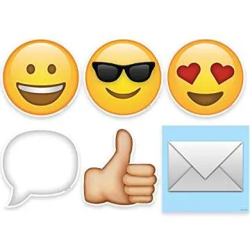 Show moreAdd a playful and vibrant touch to your creative projects with our delightful Emoji Cut-Outs! This set includes 35 pieces featuring 6 unique designs: speech bubble, thumbs-up, mail icon, smiley face, smiley face with sunglasses, and smiley face with heart eyes. Each cut-out measures 6 inches, making them the perfect size for various applications.