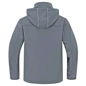 CREATMO US Men's Outdoor Hiking Ski Jacket Waterproof Hooded Multiple Pockets Coats Ski Sport Warm Fleece Windbreaker Light Grey M