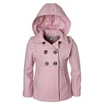 Cremson Girls' Wool Blend Hooded Ruffle Winter Dress Pea Coat Jacket - Blush (Size 5/6)