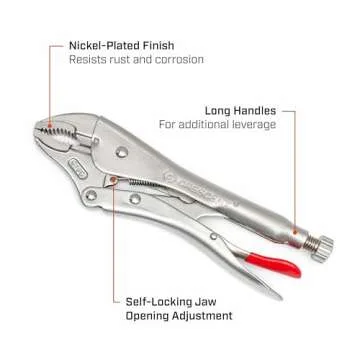 Built to last, Crescent’s pliers sport a nickel-plated finish that greatly enhances their resistance to rust and corrosion, thereby extending their lifespan. Need to make quick adjustments? The knurled texture on tightening screws provides a reliable gripping surface, regardless of whether you're using your hands or a hex key. Thanks to the maximum jaw opening size that adheres to ASME specifications and the enhanced compound action, you can achieve a robust, non-slip locking grip that’s both powerful and dependable for all your projects.